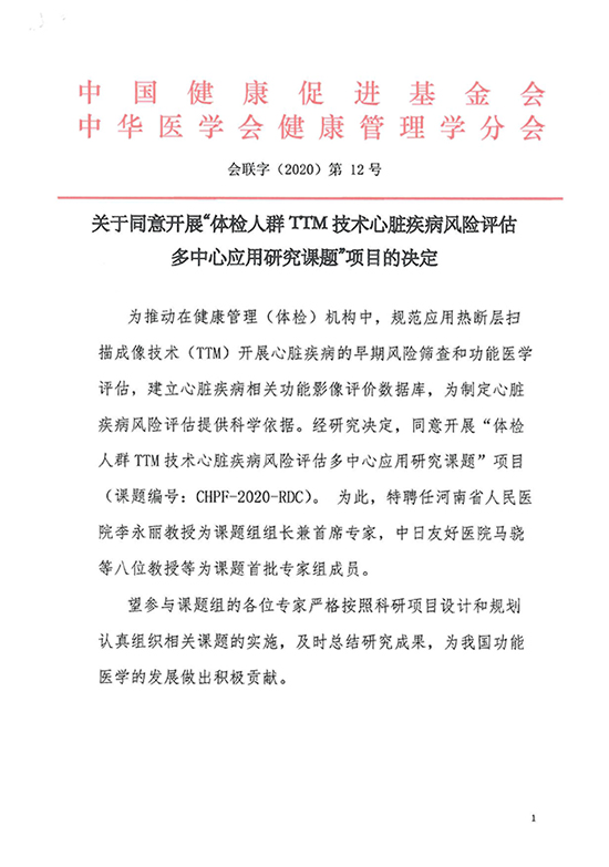體檢人群TTM技術(shù)心臟疾病風(fēng)險評估多中心應用研究課題項目正式啟動(dòng)